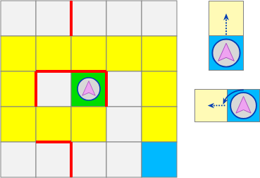 перемещается по состоящему из квадратов игровому полю. Между некоторыми квадратами имеются стены