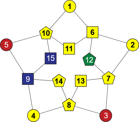 У Сандры 15 программируемых лампочек. Она пронумеровала их от 1 до 15 и объединила в орнамент в форме звезды.