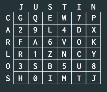 Kõigepealt paigutasid nad tähed ja numbrid 6×6 tabelisse. Seejärel kasutasid nad oma nimetähti tabeli ridade ja veergude tähistena: