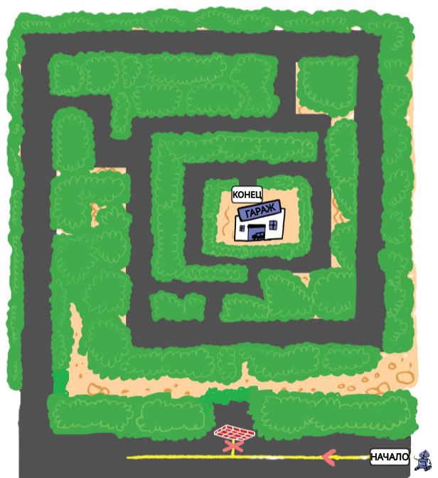 Робот Роби сломался и его нужно отвезти в гараж на ремонт. Из-за поломки Роби движется следующим образом: