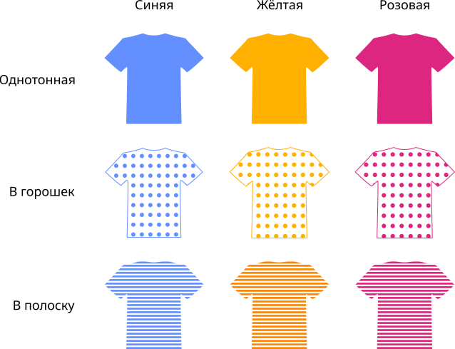 Бен работает на фабрике по производству футболок. Каждая футболка имеет два признака: