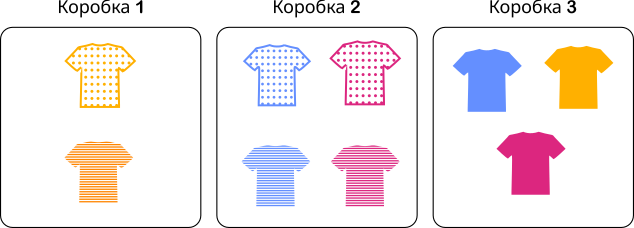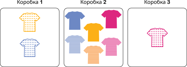 В результате автомат разложил футболки по коробкам следующим образом: