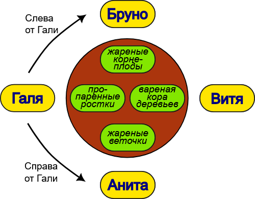 Однако между двумя блюдами чудо-машина может пропускать некоторые ингредиенты. В таком случае этот ингредиент выходит из чудо-машины в неизменённом виде.