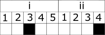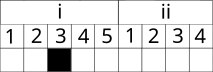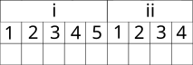 Iga tähe esitavad nad 9 ruudukesest koosneva reana, kus ruudud on jagatud kahte gruppi (i) ja (ii), nagu näha allpool: