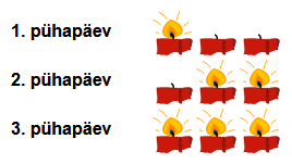 Kui advent kestaks kolm nädalat, võiks Kristo küünlaid süüdata näiteks nii (iga küünal põleb kaks päeva):