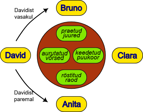 Ta kleepis kuubiku igale ruudule kleepsud nii, et vastaskülgedel on sama pildiga kleepsud. Näiteks kuubiku esiküljel on tähekesed ja sellest vastassuunas tagaküljel samuti tähekesed: