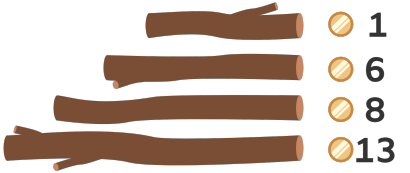 Suurt hulka väikseid oksi on tülikam kaasas kanda kui väiksemat hulka suuremaid oksi. Sellepärast koostab Bruno eeltoodud vahetuskursside põhjal tabelit, kus iga müntide arvu kohta on kirjas vähim okste arv, milleks selle vahetada saab: